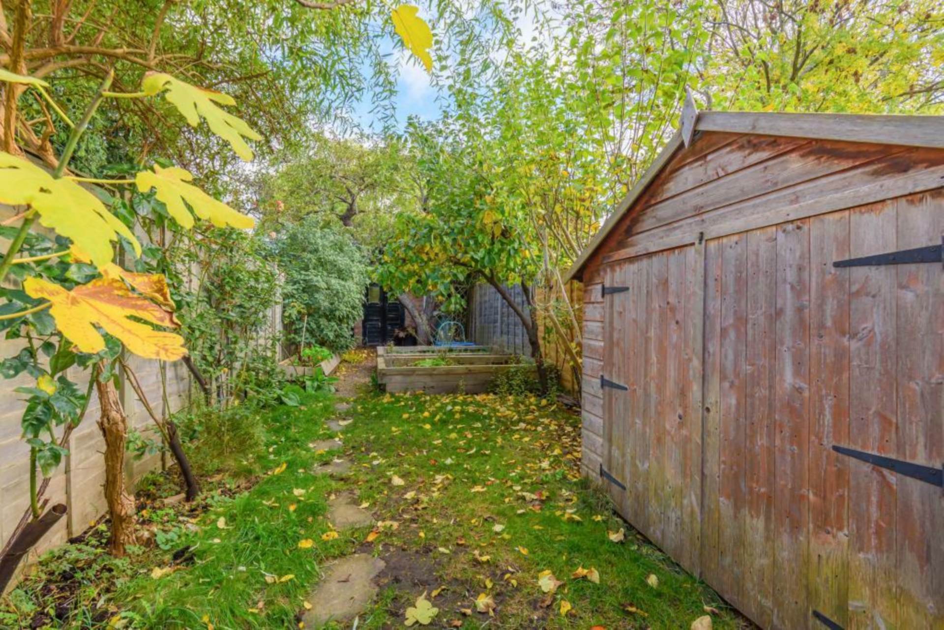 To the rear of the property is a private garden which enjoys a good level of privacy and provides an excellent outdoor space for relaxing or entertaining. The garden also benefits from a fully equipped outbuilding with electricity and heating, offering a versatile space that could be used as a home office, studio or gym.