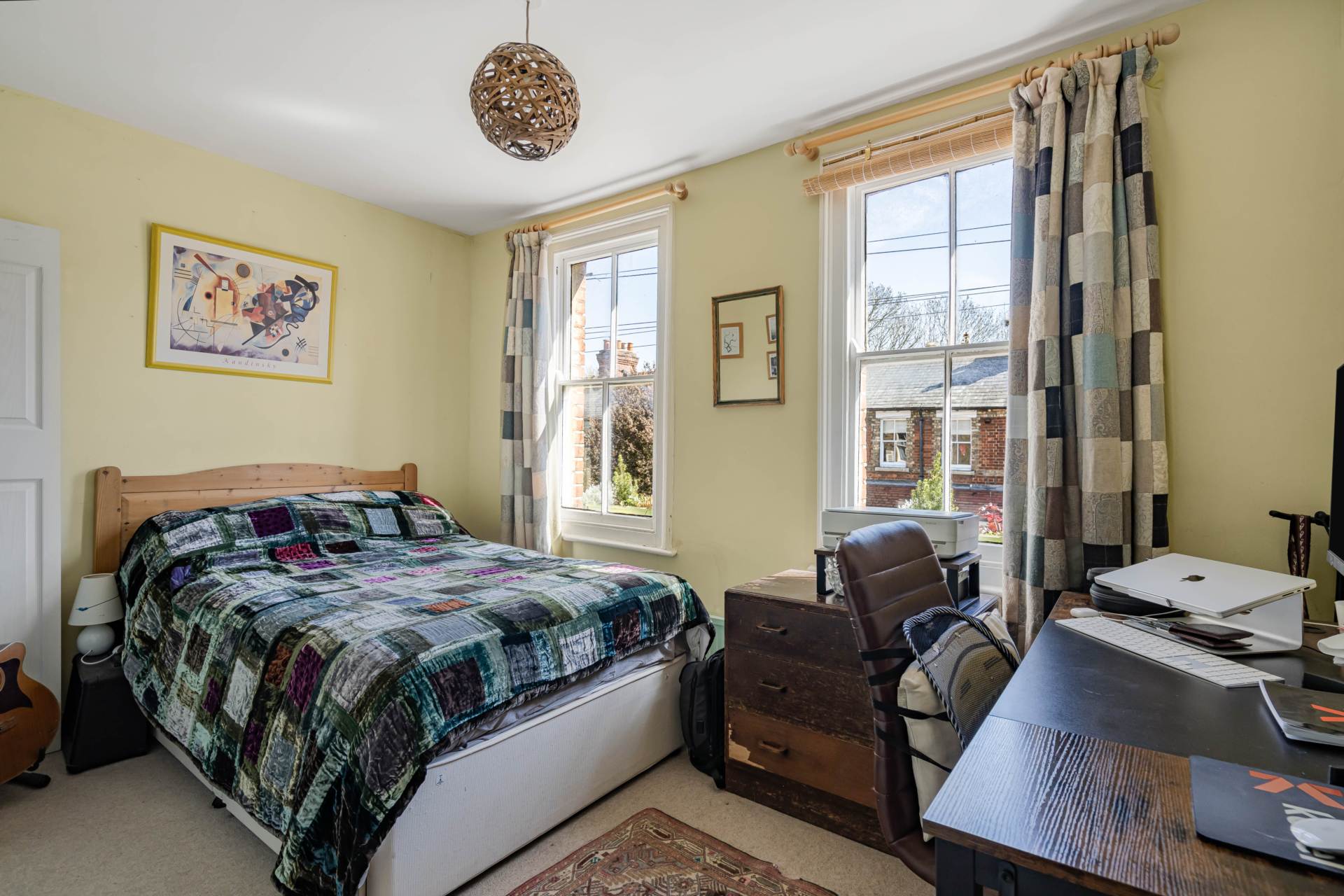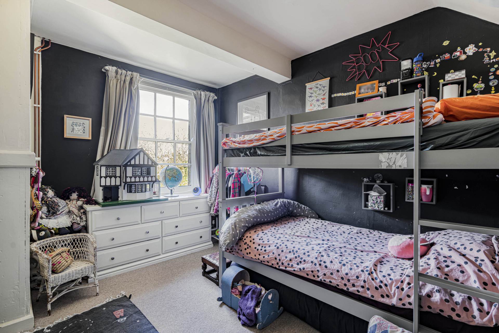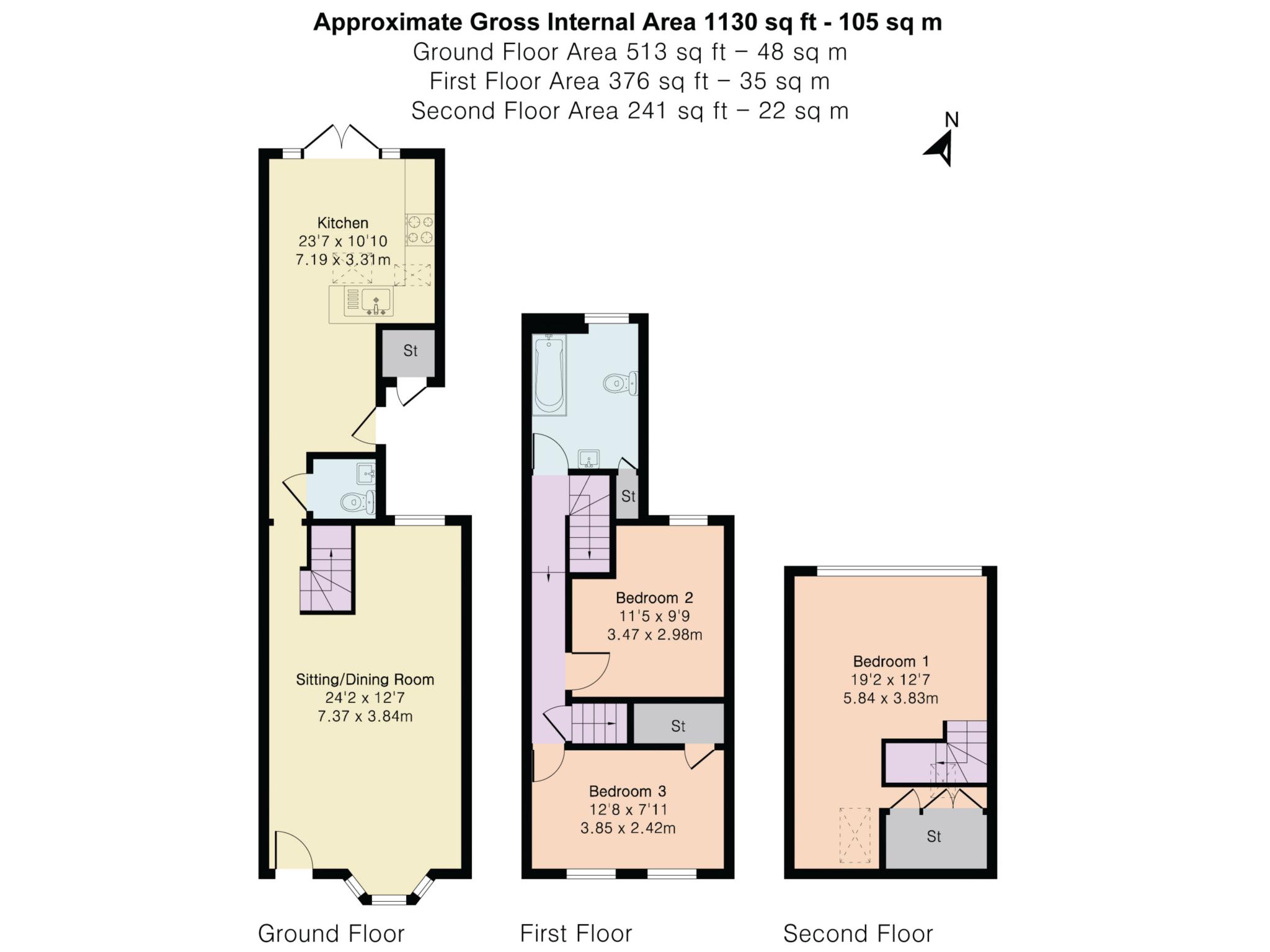 Spread over two upper floors, the home offers three generously sized bedrooms. A stylish family bathroom serves the first floor.