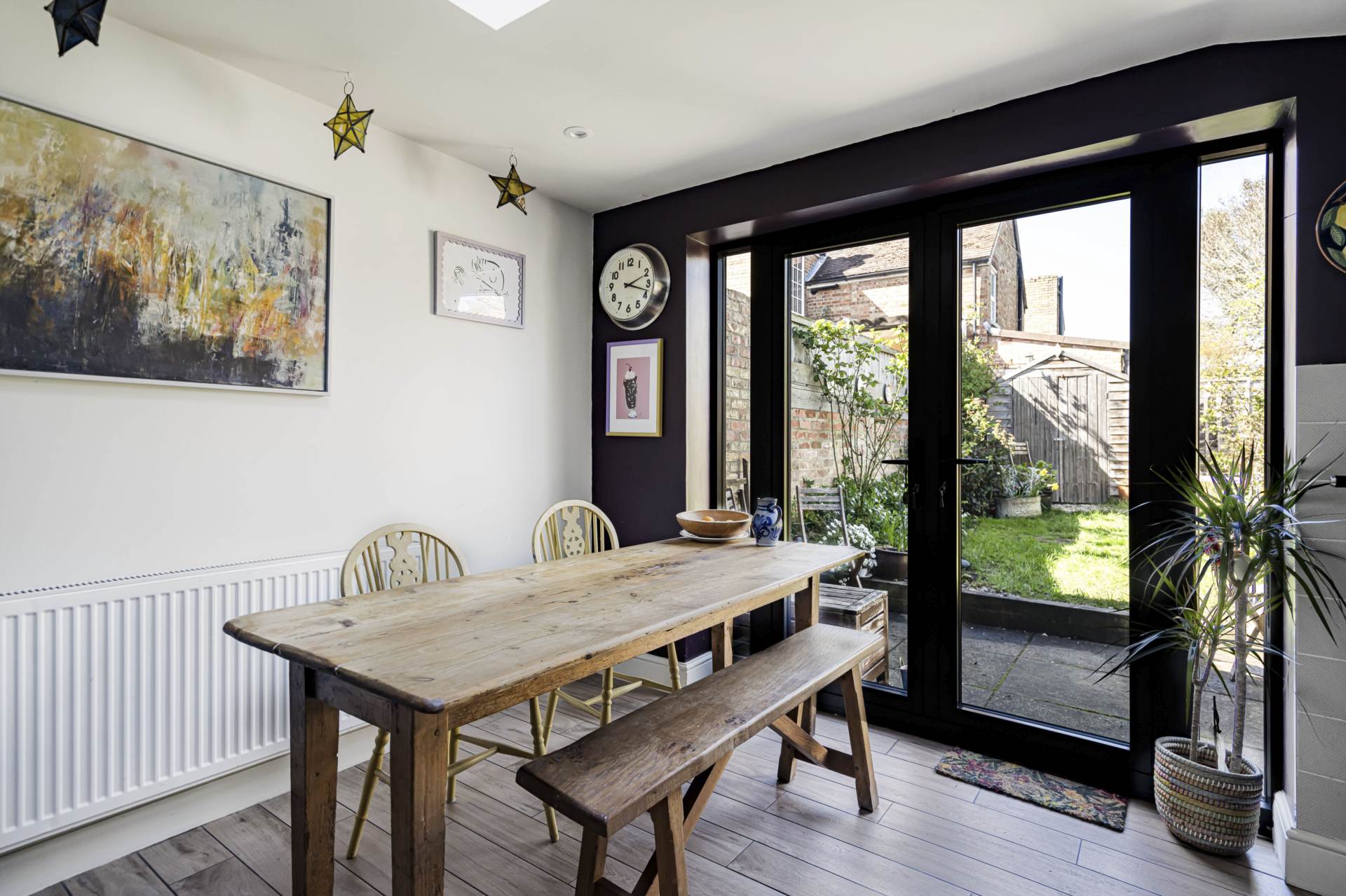 - Dual-aspect, open-plan living and dining area